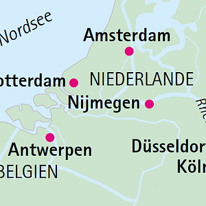 Schnuppern Sie mit der ganz besonderen, umweltfreundlichen A-ROSA SENA „belgische Luft“ und entdecken Sie die niederländischen Metropolen Rotterdam und Amsterdam. Freuen Sie sich auf ein komfortables, entschleunigendes Flussvergnügen. Wo sonst hat man als Fremder sofort das Gefühl, dazuzugehören? Wo sonst gibt es Verrücktes und Liebenswertes an jeder Straßenecke? Fahrradgeklingel mischt sich mit Musik aus offenen Fenstern, und Sie sitzen neben Einheimischen in den Kneipen und Restaurants. Und zwischen den Städten: Der Wind pfeift einem um die Nase, der Blick auf die Ufer entzückt – und ein unvergleichliches Gefühl von Freiheit breitet sich aus.